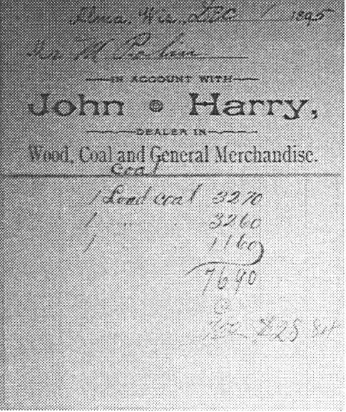 In 1887, John Harry opened up a coal yard and sold coal to the steamboats for many years. He also furnished the town people with their winter supply of coal in the fall.[11]